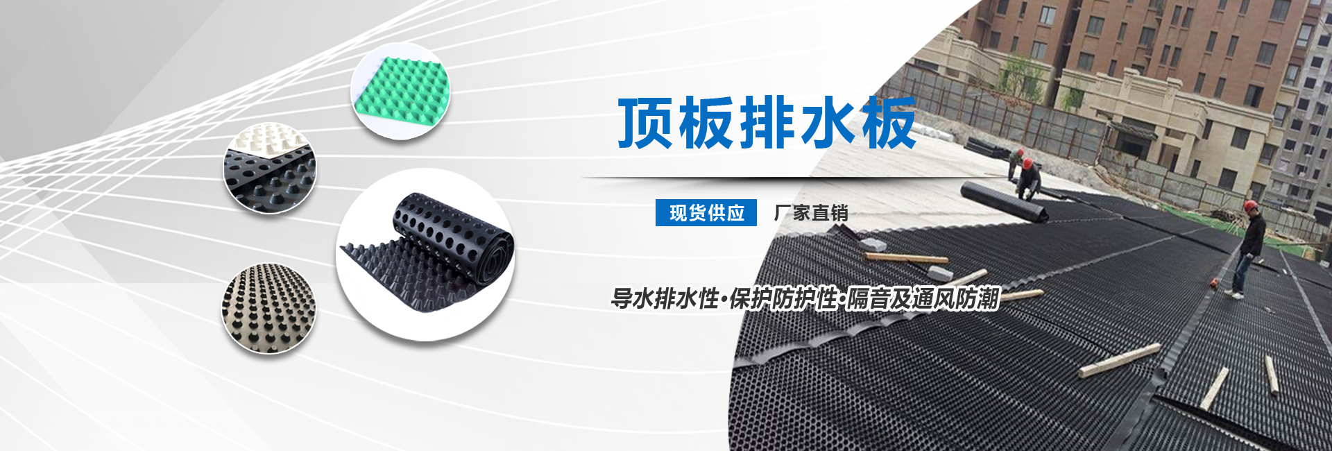 排水板是由聚苯乙烯(HIPS)或者是聚乙烯(HDPE)塑膠底板經(jīng)過沖壓制成圓錐突臺(tái)或者加勁肋的凸點(diǎn)(或中空圓柱形多孔)而成,幅寬有3米,長度有10米或者是15米。 施工中常用的排水